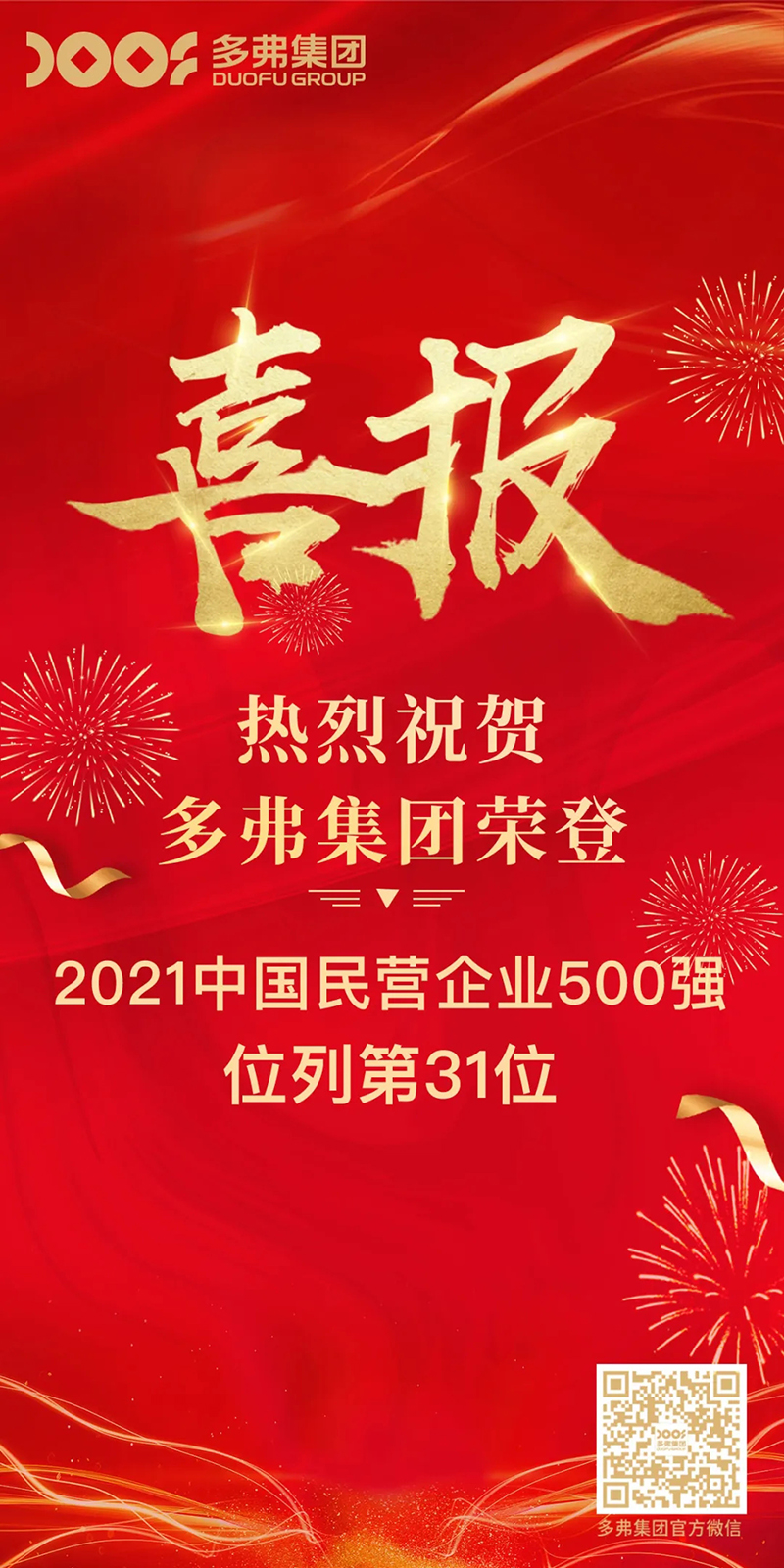 同日,全國工商聯(lián)在長沙發(fā)布《2021中國民營企業(yè)500強榜單》,多弗國際控股集團再次蟬聯(lián),以1909.1564億元營收位居第31位。