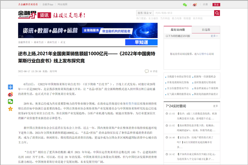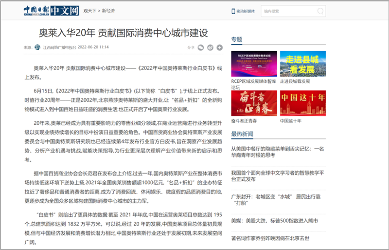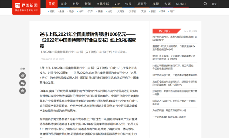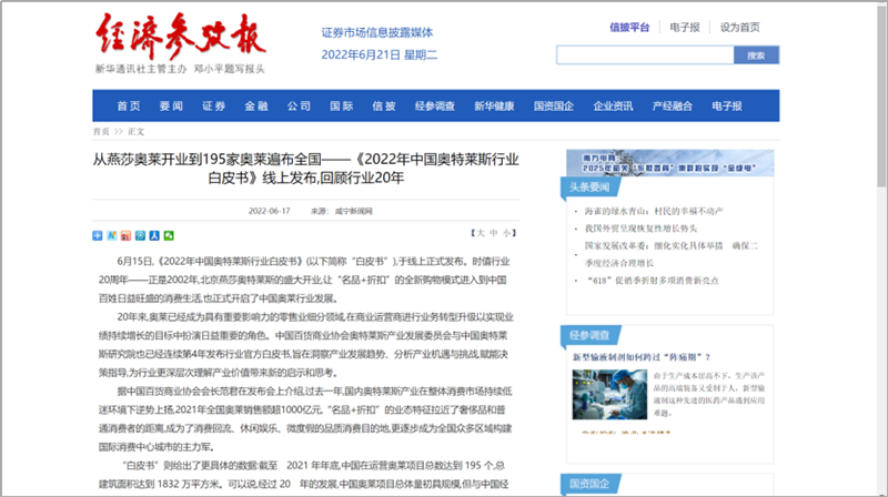 國(guó)內(nèi)媒體爭(zhēng)相報(bào)道,中國(guó)奧萊市場(chǎng)緣何逆勢(shì)上揚(yáng),2021年銷售額超1000億元