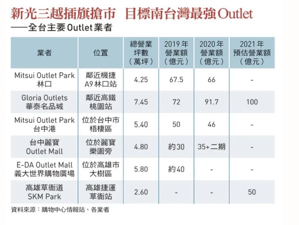 臺(tái)灣主要奧萊營業(yè)額統(tǒng)計(jì)(2019-2021)