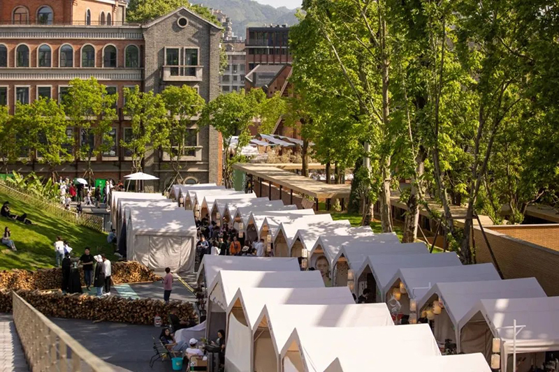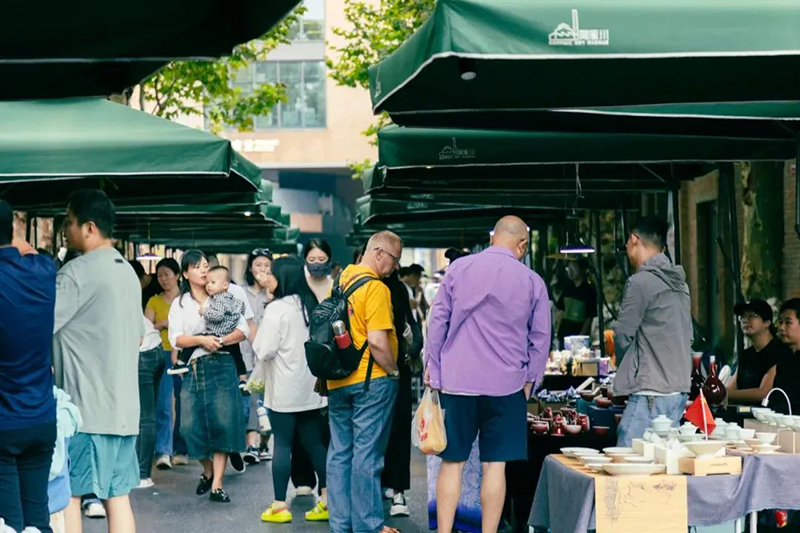 集市每周五、周六在街區(qū)廣場及主干道開市,占地9000平米,吸引數(shù)千名景漂創(chuàng)業(yè)青年參與,每月進(jìn)行報名和重新篩選。
