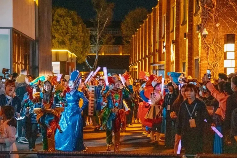 夜幕徐徐降臨,華燈初起,鳳凰山下的陶溪川文創(chuàng)街區(qū)被燈光勾勒出優(yōu)美的金色線條,胡桃里的音樂飄搖,人流不息,一派青春活力。