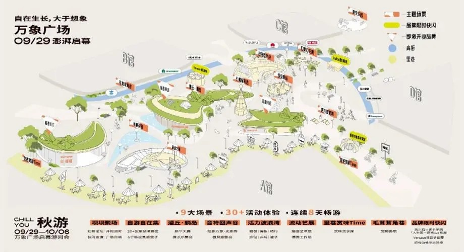 在萬(wàn)象廣場(chǎng)亮相之際,成都萬(wàn)象城打造了「秋游 CHILL YOU」廣場(chǎng)游園會(huì),帶來(lái)9大場(chǎng)景、20+好物展位、30+活動(dòng)體驗(yàn)、連續(xù)8天的夢(mèng)幻暢游,每個(gè)空間承載不同內(nèi)容,啟幕首日吸引客流超19萬(wàn)人次。